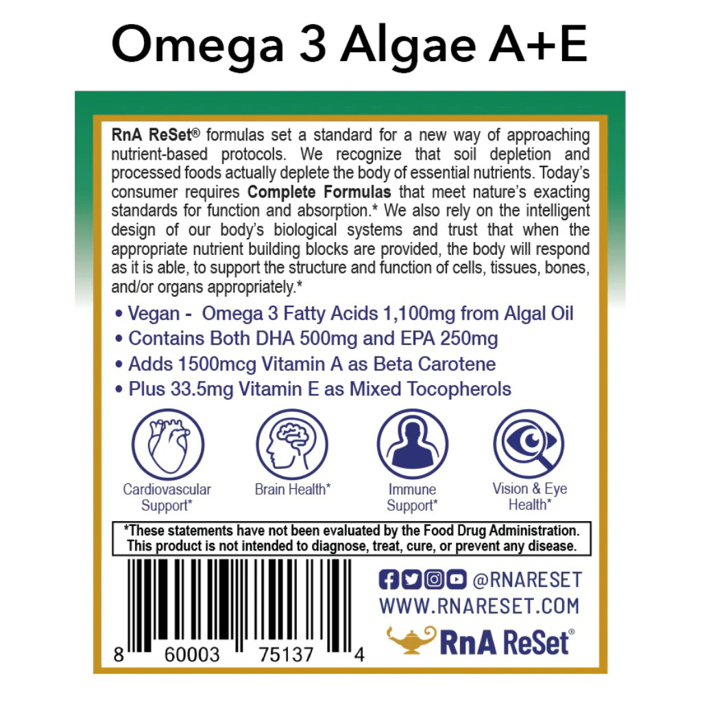 Omega 3 Algae A+E® - exkluzívny produkt doktorky Deanovej! Ryby dostávajú svoje Omega-3 mastné kyseliny pojedaním rias, preto je lepšie ísť rovno k zdroju a využiť riasy na výrobu doplnku Omega-3.
